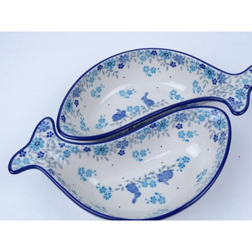 Bunzlau duo serveerschaal vissen 22 cm. * F02-2857 konijntjes *