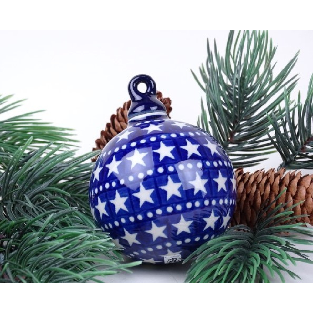 Bunzlau kerstbal 10,5 cm. hoog * 184- 119 sterretjes *