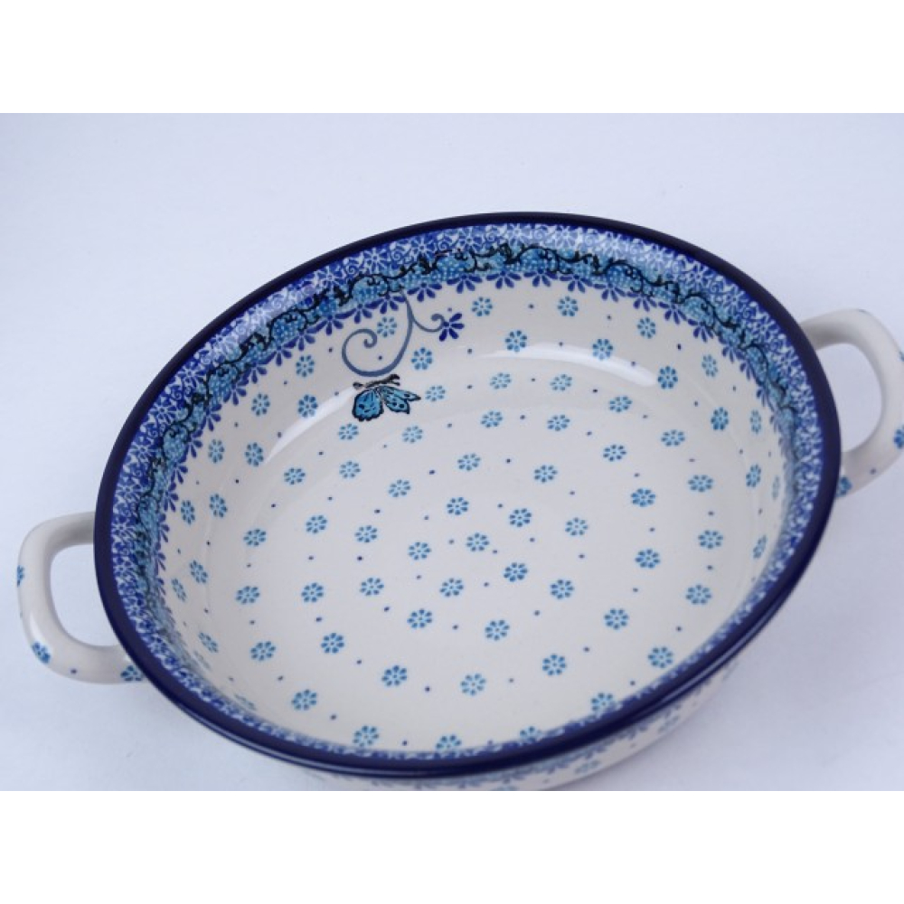 Bunzlau ovenschaal met handvat 26 cm. breed * 419-2008 vlinder *
