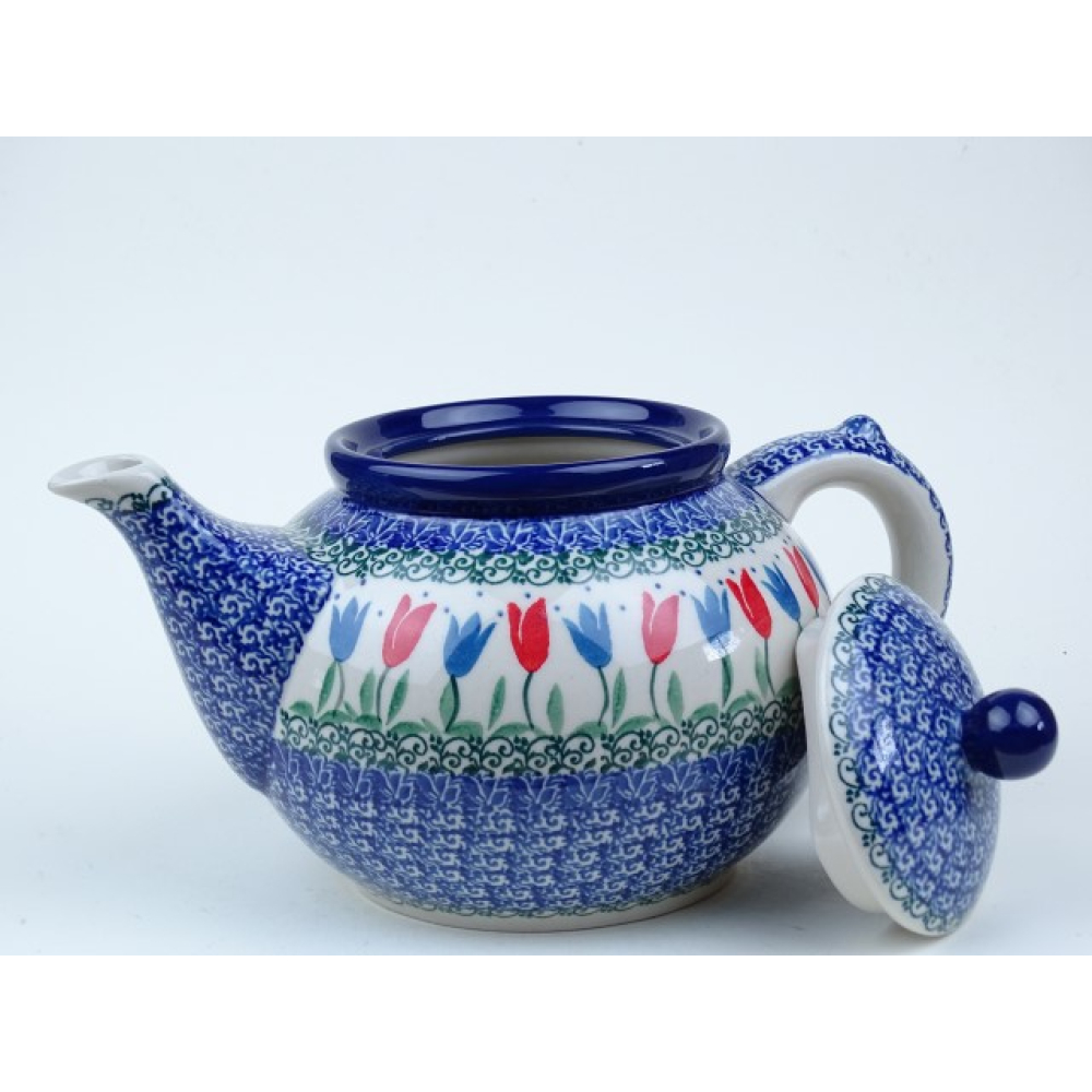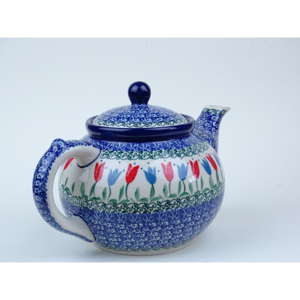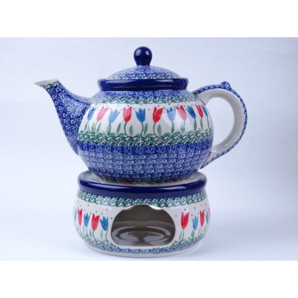 Bunzlau theepot 1,2 liter + stoof * 060 +63-2599 rode tulpen *