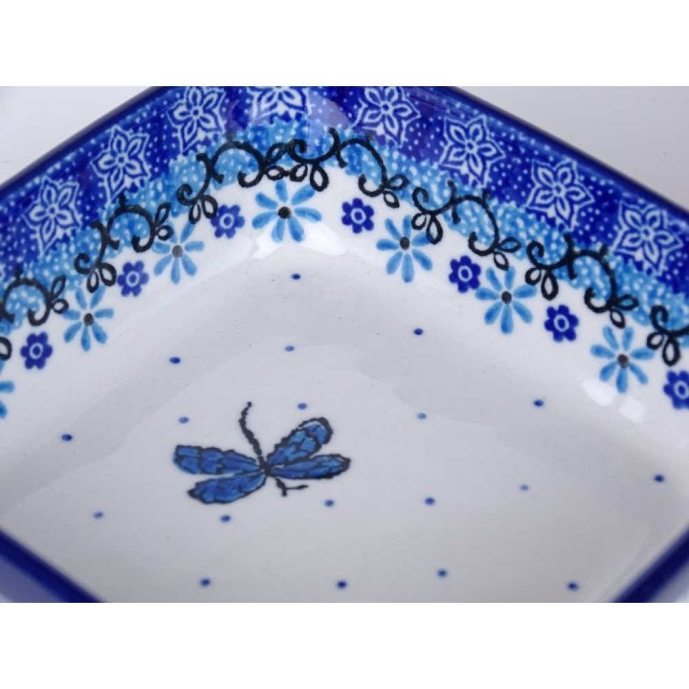 Bunzlau vierkant schaaltje 13 cm. * 429-1938 vlinder *